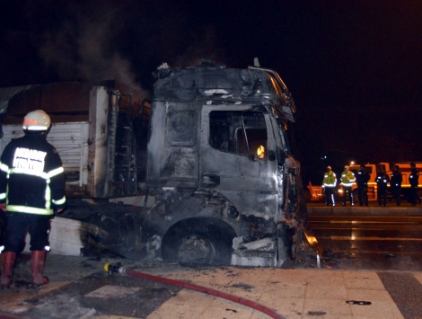 Durumu fark eden sürücü, tırı yol kenarına çekti.