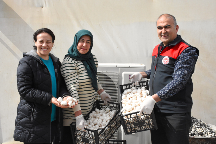 Katıldığı mantar yetiştiriciliği kursunda üretimin bütün aşamalarını öğrenen 3 çocuk annesi Şıvgın, proje kapsamında yüzde 70 hibeyle evinin önündeki atıl arazisine mantar tesisi kurdu.