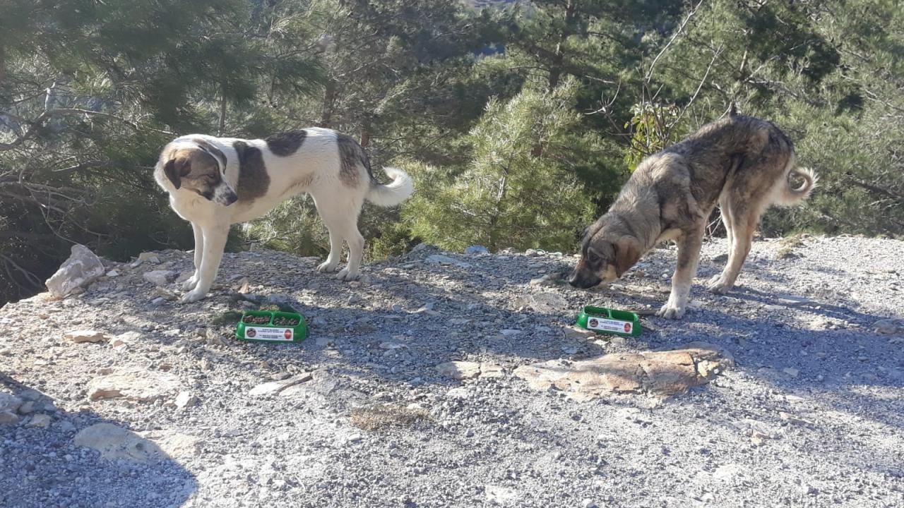 Alanya Belediyesi Veteriner İşleri Müdürlüğü’ne bağlı ekipler, sokak hayvanlarının beslenme düzeninin sağlanması için belirlenen besleme noktalarına mama bırakıyor.