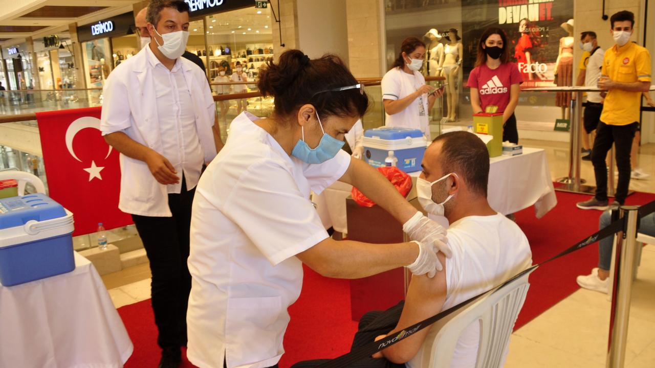 Antalya'nın Manavgat ilçesinde AVM çalışanlarının yanı sıra alışverişe gelen vatandaşlara da aşı uygulandı. Manavgat İlçe Sağlık Müdürü Mehmet Deniz, "Salgının aşıyla durdurulacağını düşünüyoruz. Onun için aşılama çok önemlidir" dedi.