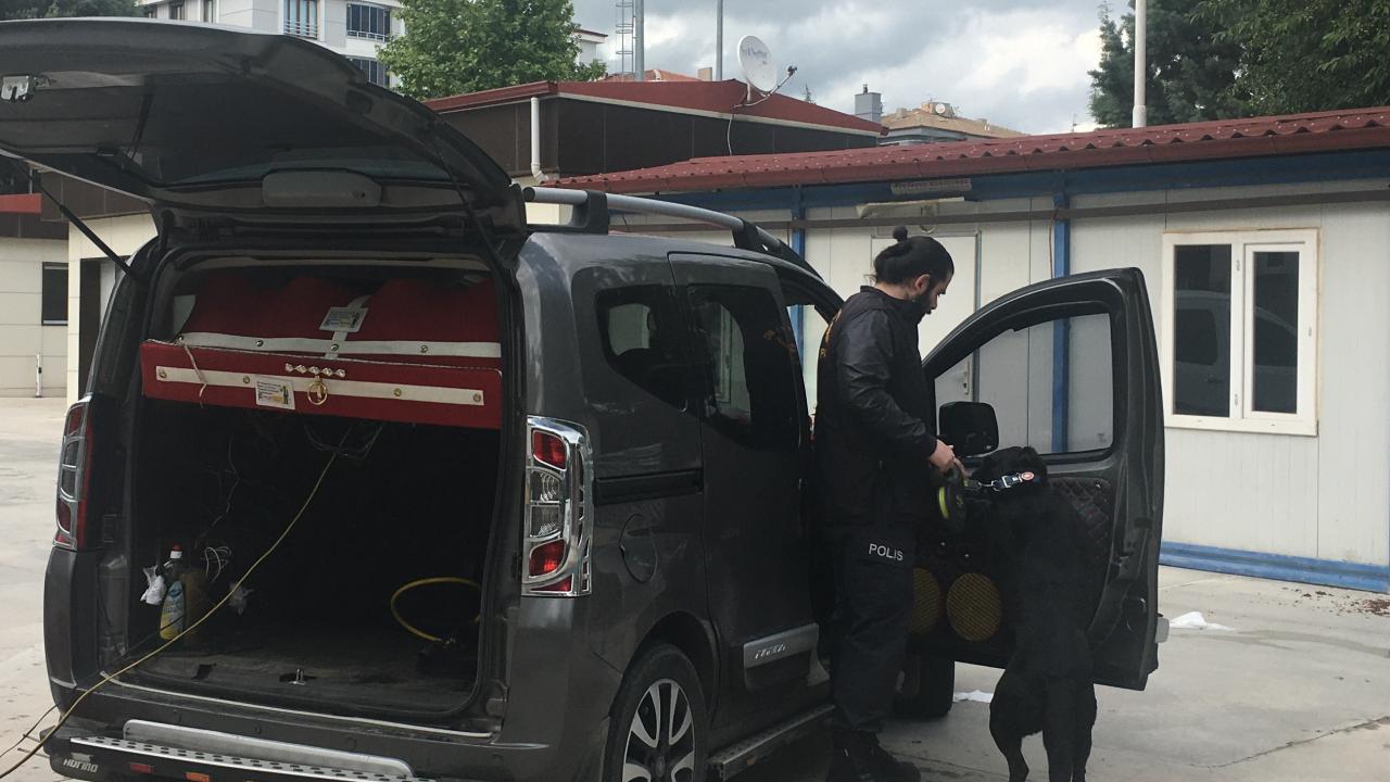 Narkotik dedektör köpeği "Gece" ile yapılan aramada, hafif ticari aracın yan kapısına gizlenmiş 5 gram metamfetamin bulundu.