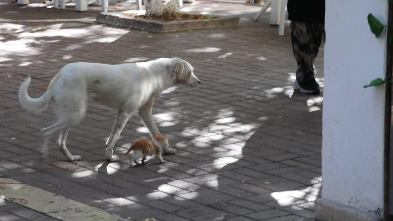 Ziyaret kasabasında bir restoranın sahibinin baktığı ve restoran çalışanlarının "Akkız" ismini verdiği köpek, "Sarıkız" adı verilen kedi yavrusuna annelik yapıyor.