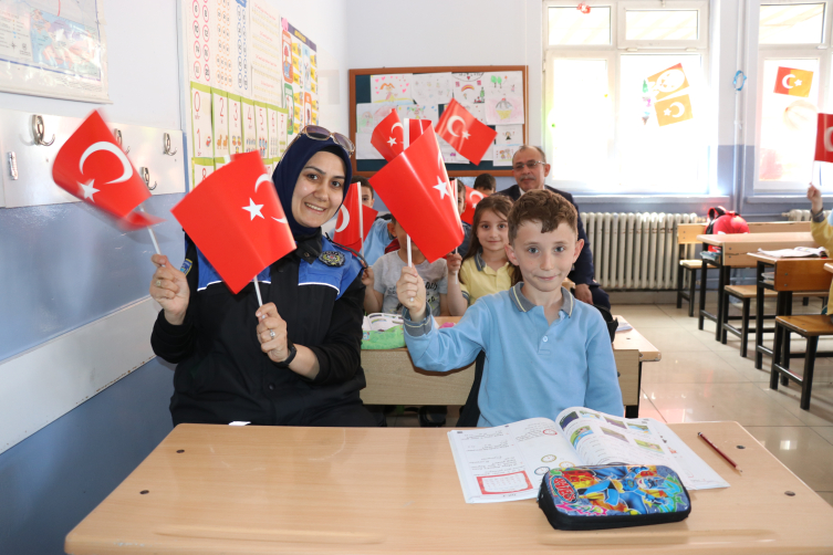 Sınıf öğretmeni Gülcan Kazancıoğlu, "Polislerimiz hiç habersiz geldiler. Çok mutlu olduk. Bayramımızı kutladılar, çok teşekkür ediyoruz" dedi.