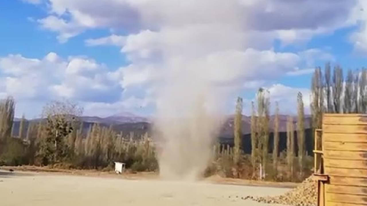 Amasya'da güneşli havada oluşan hortum görenlere korku dolu anlar yaşattı.