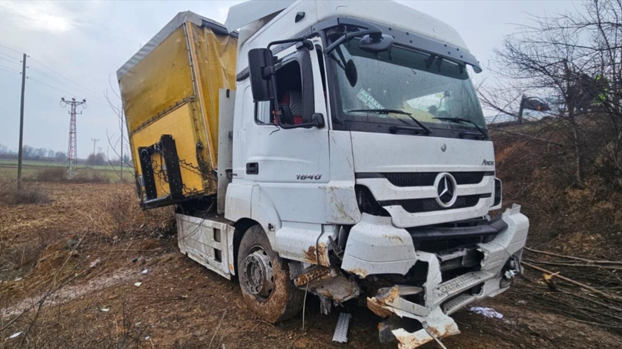 Üzeyir A. idaresindeki tır, Yıldızköy mevkisinde sürücüsünün direksiyon hakimiyetini kaybetmesi sonucu tarlaya girerek durabildi.