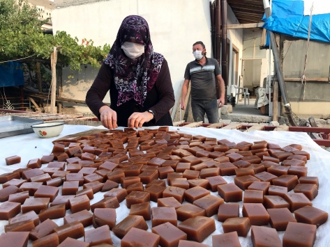 "Dedem, babam, annem eşim ve çocuklar iş birliği halinde olunca daha pratik oluyor. İki ay içinde hava bozulmadan hazırlıyoruz, sonra satışını yapıyoruz. Üzüm suyunun kazanlarda ısıtarak tatlanmasını sağlıyoruz. Kıvama ulaşınca içine un katıyoruz belli bir ölçüde. Karıştırarak pişiriyoruz daha sonra serip kurumaya bırakıyoruz. Ankara, Niğde, Kayseri gibi çevre illerin yanı sıra turistler de lezzetli ve doğal olduğu için tercih ediyorlar. Anadolu jelibonu olarak biliniyor. Çocuklar daha çok talep ediyor. Farklı illerden siparişler olunca kargoyla da adrese teslim gönderiyoruz."