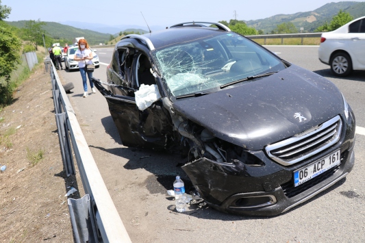 Lastiği patlayan otomobil, yaklaşık 100 metre sürüklenerek bariyerlere çarpmadan durabildi.