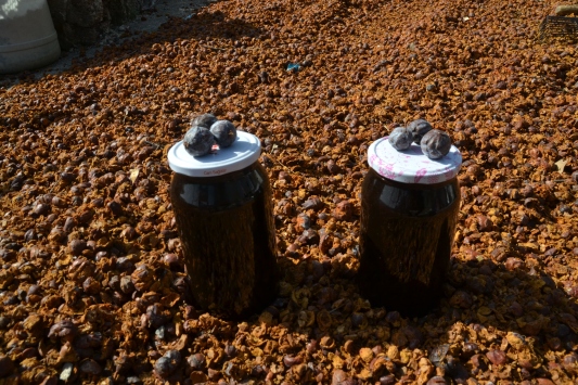 Pekmez yapımı için henüz olgunlaşmadan toplanan kozalaklar, kadınlar tarafından imece usulüyle kırılıyor.