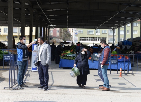 "Pazarın toplanacağı gün, pazar yerine kontrollü giriş ve çıkışları sağlamak için belirlenen giriş ve çıkışlar haricinde diğer tüm alanları, demir bariyer ve benzeri araç gereçle kapatarak, kontrolsüz giriş ve çıkışları engelledik. Pazar yerlerimizdeki tezgahları, araları en az 3 metre olacak şekilde yerleştirdik. Pazar alanına içerideki esnaf sayısının en fazla 2 katı kadar vatandaş alıyoruz. İçeride sürekli aynı sayıda vatandaşın bulunmasını sağlamaya özen gösteriyoruz. Zabıta ekiplerimiz bu konularla ilgili sürekli denetimlerini sürdürecektir."