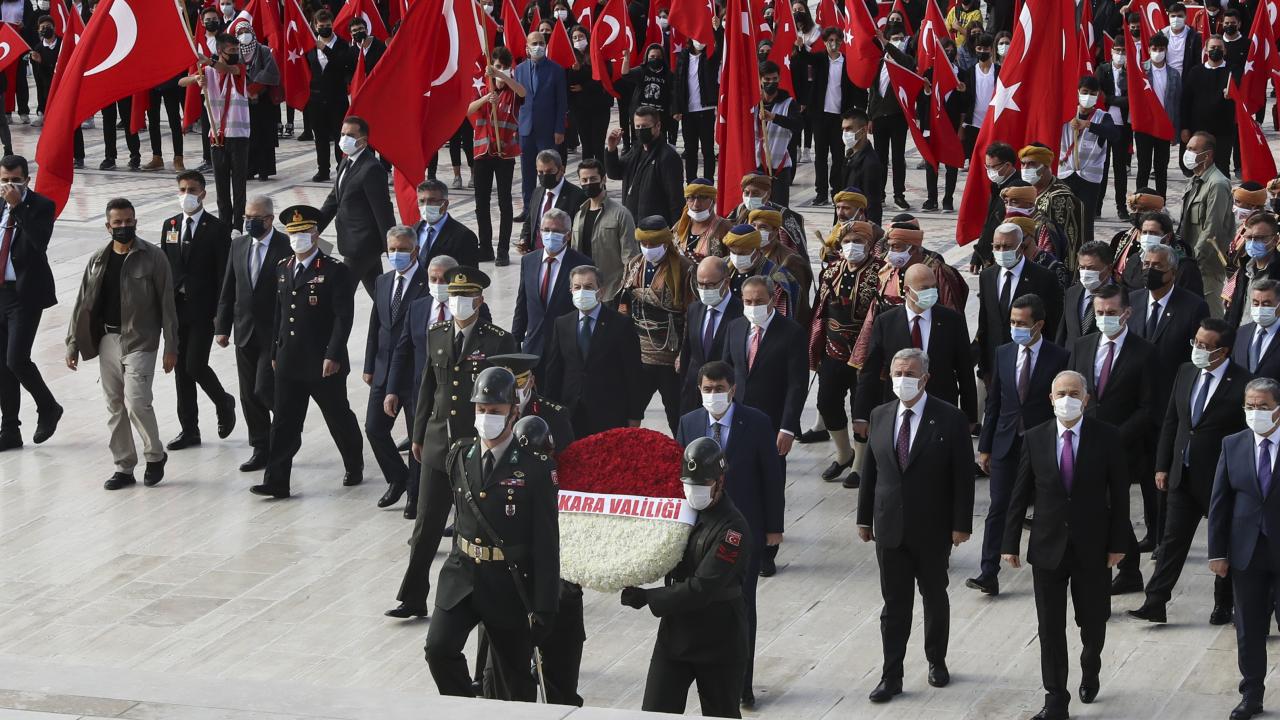 Şahin'in mozoleye çelenk bırakmasının ardından saygı duruşunda bulunuldu, İstiklal Marşı okundu.