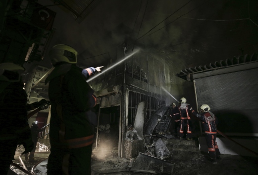 İş yeri sahibinin yangın söndürme çalışmalarını üzüntüyle izlediği görüldü.