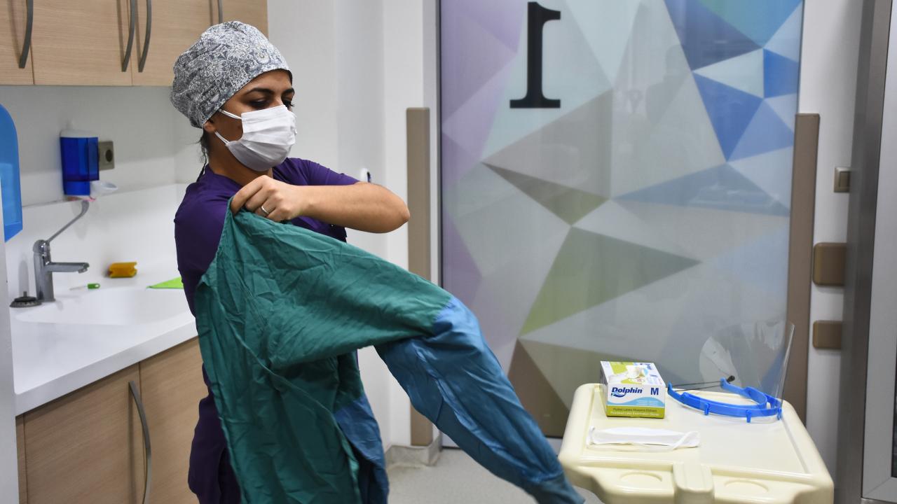 "8 ve 10 yaşında iki çocuğum var. Biz bir odada izole olduk, onlar da başka bir odada izole oldu. Çocuklarım başta bu durumu kabullenmek istemedi. İlkinde babaları yanlarındaydı. Bu sefer ikimizden de ayrı kaldılar. Yemek yapmam gerekiyor, canlı dersleri var, çocuklarla ilgilenmem gerekiyor. Hocalarıma sordum, 'Çok uzun süre aynı ortamda bulunmamak şartıyla çift eldiven, çift maske ile yapabilirsin." dedi. Çift eldivenimi giydim, çift maskemi taktım, sosyal mesafemi bozmadan yemeklerini hazırlayıp odalarına koydum. Odalarından çıkmadılar, lavabolarımızı ayırdık. Sürekli her yeri sildim."