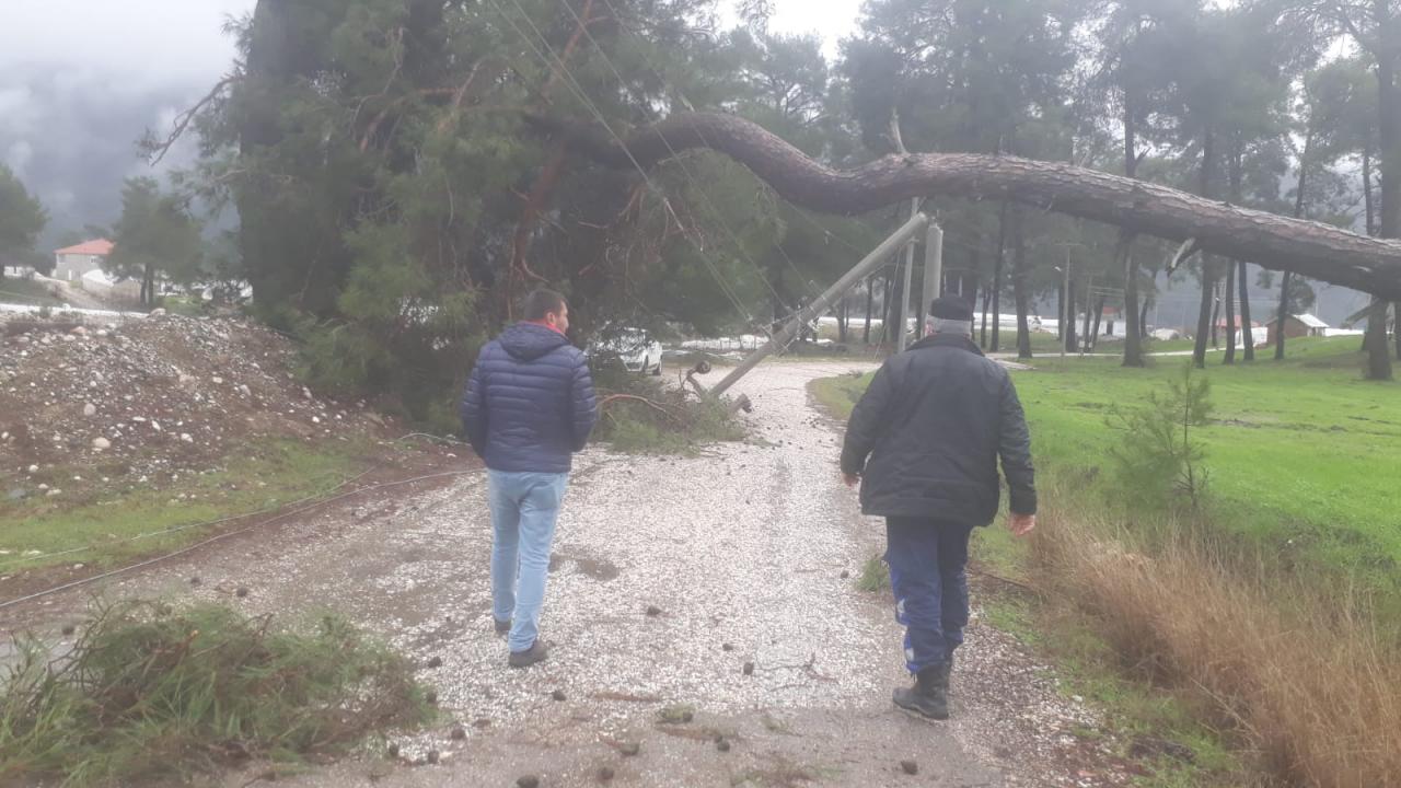 Kaş ve Demre ilçelerinde de bazı ağaçlar ile elektrik direkleri devrildi. Kaş'ta bir iş yerinin çatısı uçtu.