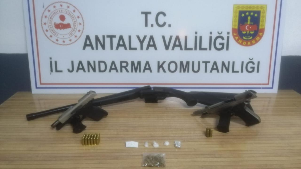 Aramada, 8 gram metamfetamin, 6 gram skunk, 2 tabanca, av tüfeği ve 28 fişek ele geçirildi.
