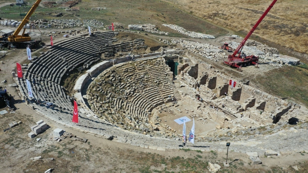 Tiyatronun izleyicilerin oturduğu üst kısmındaki çalışmaların yüzde 70'inin tamamlandığını, yüzde 30'luk bölümünü de bir ay içerisinde tamamlayacaklarını, yıl sonuna kadar ise alt kısımdaki çalışmaların bitirileceğini belirten Şimşek, "2200 yıl önce yapılan antik tiyatro 1600 yıl sonra tekrar insanlarla, sanatla, kültürle buluşturulacak. Ben bunun için her şeyden önce Büyükşehir Belediye Başkanımız Osman Zolan'a çok teşekkür ediyorum. Burada çok büyük özveriyle destek sağlandı." ifadelerini kullandı.