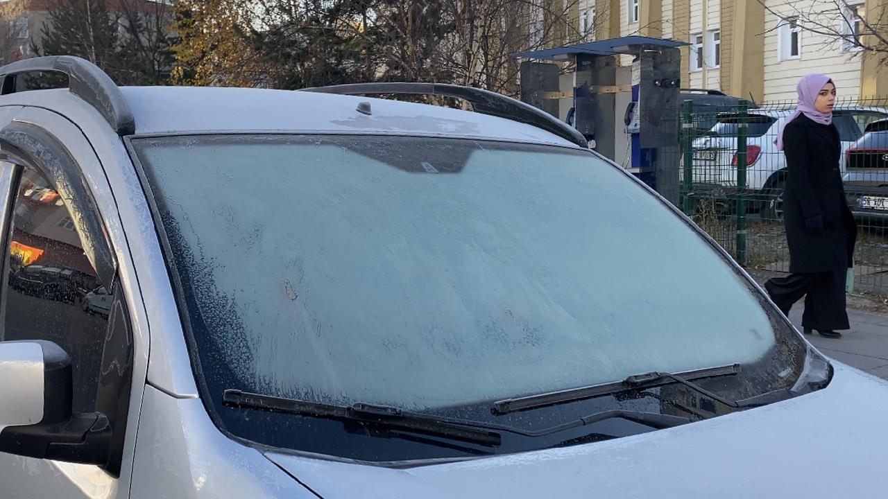 Hava sıcaklığının gece sıfırın altında 6 dereceye düşmesiyle araçların camları buz tuttu.