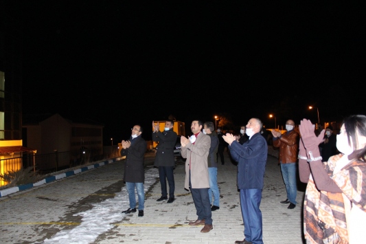 Ailelerinden uzak durup, hastalıkla mücadele için büyük bir fedakarlık yapan memurları tebrik etmek ve alkışlamak için geldiklerini ifade eden Kesgin, "Yaptığınız fedakarlık çok büyük. Bunun zorlu bir süreç olduğunu biliyoruz. Allah hepimizin yar ve yardımcımız olsun. İnşallah yakın sürede normal çalışma sistemimize geri döneceğiz. Her zaman yanınızda olduğumuzu bilin. Herhangi bir ihtiyacınız, talebiniz olduğunda bizlere ulaşabilirsiniz." diye konuştu.