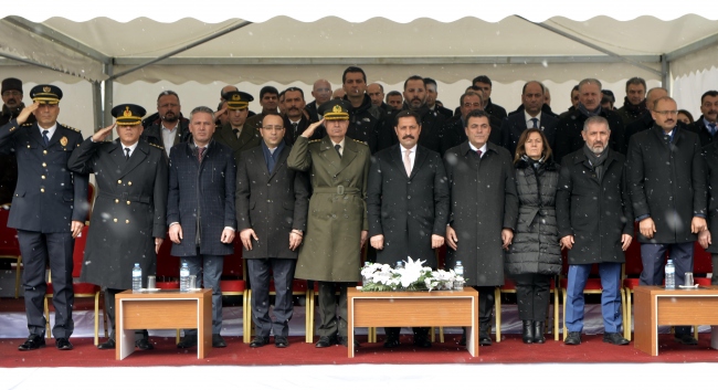 Valilik önündeki törende, Ardahan Valisi Mustafa Masatlı, Belediye Başkanı Faruk Demir ve Garnizon Komutanı Albay Tahir Savran tarafından Atatürk Anıtı'na çelenk sunulduktan sonra saygı duruşunda bulunuldu ve İstiklal Marşı okundu.