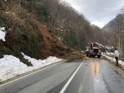 Ardeşen-Çamlıhemşin kara yolunda heyelan nedeniyle kapanan yol yaklaşık 3 saatlik çalışma sonucu ulaşıma açıldı.