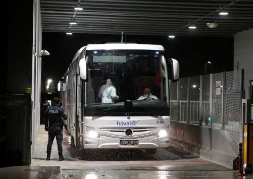 Türkiye'ye gelen yolcular, sağlık ekiplerinin yaptığı kontrolün ardından kendilerini bekleyen otobüslere bindirildi.