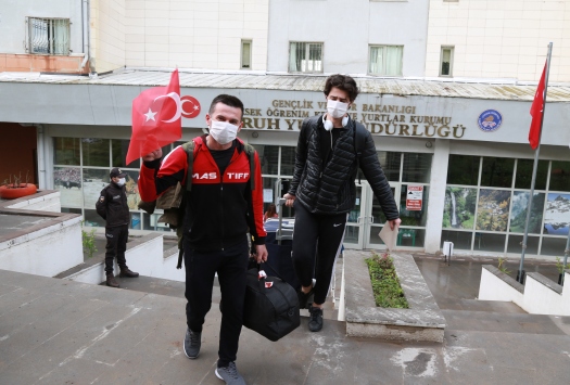 Artvin Çoruh Üniversitesi Seyitler Yerleşkesi'nde bulunan Çoruh Öğrenci Yurdunda kalan vatandaşlar görevliler nezaretinde otobüslere bindirilerek Türkiye'nin 7 bölgesinde 38 farklı şehre gitmek üzere yola çıktı.