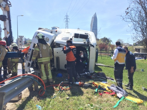 İstanbul'da alınan bilgiye göre, Yücel Alkan idaresindeki 34 KP 3955 plakalı beton mikseri, Vedat Günyol Caddesi'nden ayrılıp TEM Otoyolu istikametine dönerken virajı alamayarak yan yattı. Araçta sıkışan sürücü Alkan, olay yerine gelen itfaiye ekiplerinin uzun uğraşları sonucu kurtarılarak, ambulansla hastaneye kaldırıldı.