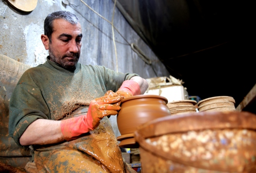 Atölyelerindeki tezgahlarda çamura şekil veren ustalar, bölgede sakin günlerin yaşandığı bu süreçte, tasarladıkları yeni motif, süs ve tüketim malzemeleriyle ürün yelpazesini genişletiyor.