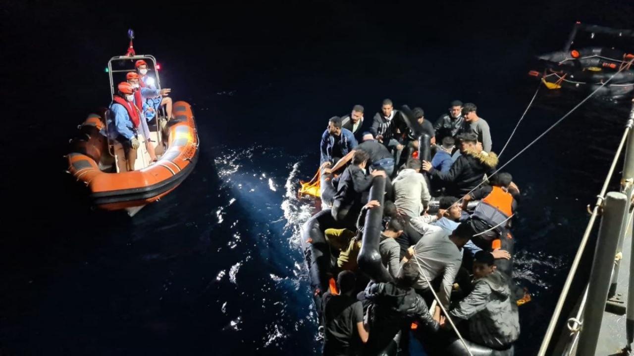 Yunanistan unsurlarınca Türk kara sularına bırakıldığı belirtilen lastik bottaki 84 sığınmacı kurtarıldı.