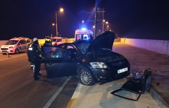 Balıkesir'in Ayvalık ilçesinde Lale Adası ve Cunda Adası'nı birbirine bağlayan Gönül Yolu Köprüsü'nde kontrolden çıkan ve kimin kullandığı öğrenilemeyen 34 FC 7536 plakalı otomobil, yol kenarındaki aydınlatma direğine çarptı.