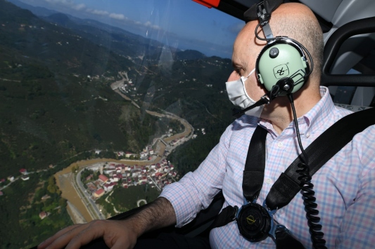 Bakanlıktan yapılan açıklamaya göre, Karaismailoğlu, Ordu-Giresun Havalimanı'ndan havalanan helikopterle Giresun'da selden zarar gören afet bölgesindeki yolları inceledi.