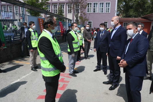 Bakan Soylu, Ankara Valisi Vasip Şahin ve beraberindekilerle Çankaya Kaymakamlığı Vefa Sosyal Destek Koordinasyon Merkezi'ne geldi.