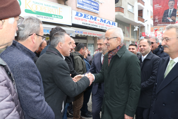 Konuşmaların ardından esnafı gezen Bakan Uraloğlu, hem sorun ve taleplerini dinledi hem de belediye başkan adaylarına destek istedi.