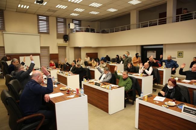 Başkan yardımcıları ve meclis üyelerinin katıldığı toplantıda, su tüketim bedelinde yüzde 7 indirim yapılması meclis üyelerinin oyuna sunuldu.