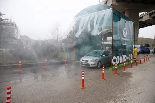 Sağlık personeli de ateş ölçümlerini yaptığı sürücülere uyarılarda bulunuyor.