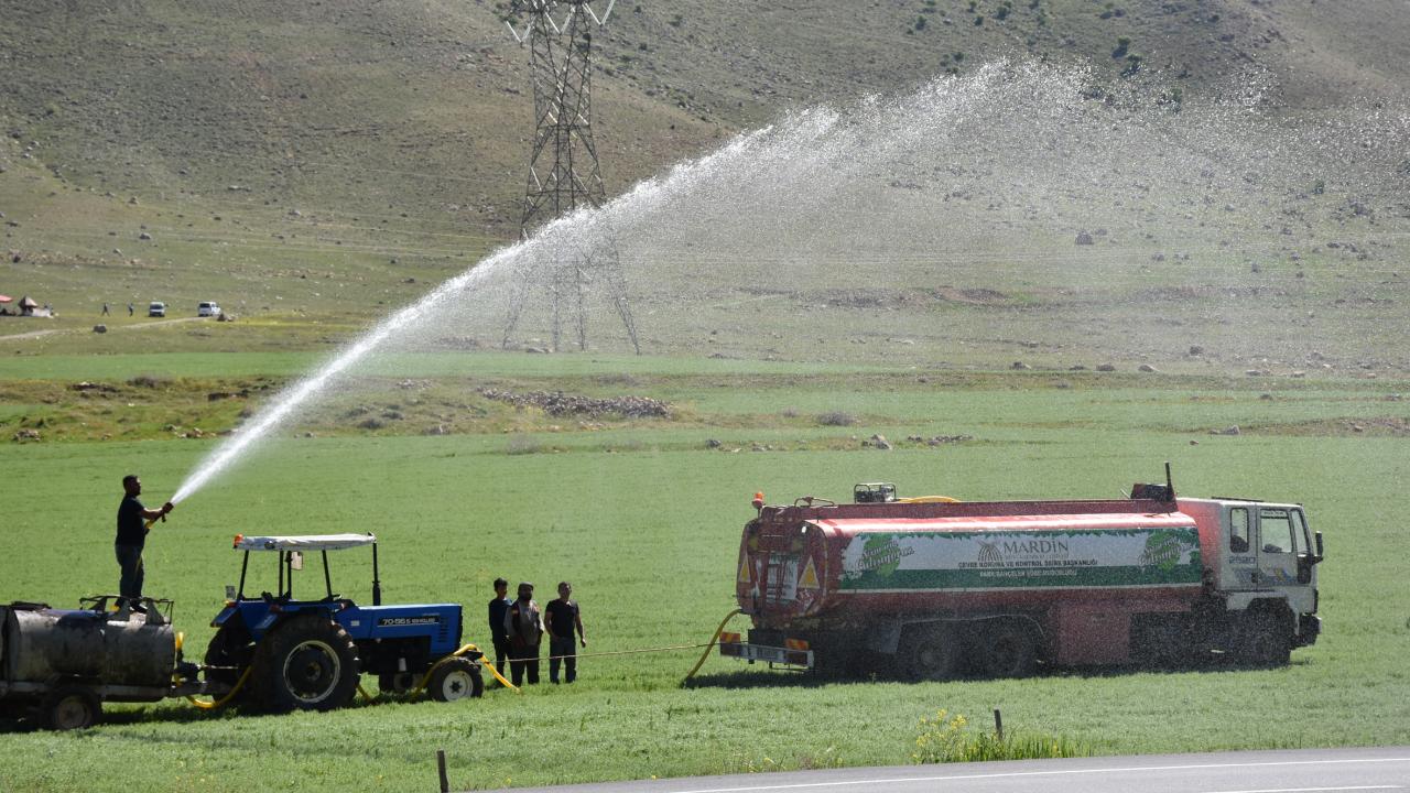 Son yılların en kurak mevsiminin geçtiği Batman’da tarımsal arazilerin kurumaya yüz tutması çiftçiyi zor durumda bıraktı. Batman Ovası'ndaki bazı çiftçiler kiraladıkları tankerlerle mercimek, arpa ve buğday ekili alanlara su taşıyor. Demirbilek köyü yakınlarında 80 dönümlük mercimek tarlasının kurumaya yüz tutması üzerine harekete geçtiği belirten Asım Yılmaz, "Son 20 yılın en kurak dönemini yaşıyoruz. Nisan ayında beklenilen yağışlar gerçekleşmedi. Tarlalar kurmaya yüz tuttu. Kiraladığımız tankerlerle can suyunu tarlaya taşıyoruz. Ekili alanı ne kadar kurtarırız diye tankerle üzerine kurduğumuz dinamolarla taralı dört bir tarafını sulamaya çalışıyoruz. Çiftçileri zor günler bekliyor" dedi.