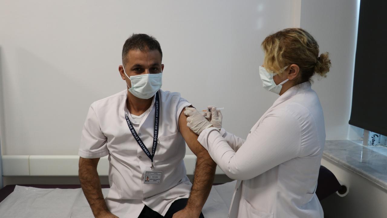 Batman Eğitim ve Araştırma Hastanesinde aşı olan İl Sağlık Müdürü Dr. Hakan Pamukçu, sağlık çalışanları tarafından yoğun başvuru olduğunu söyledi.