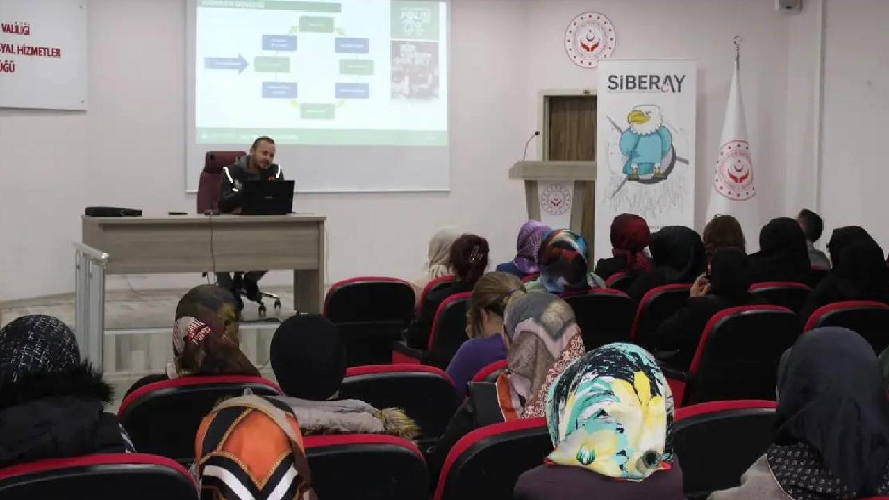 Siber Suçlarla Mücadele Şube Müdürlüğünce Aile ve Sosyal Hizmetler İl Müdürlüğü konferans salonunda kurum personellerine, evde bakım hizmetinden faydalanan ailelere, sosyal ekonomik destek alan ailelere ve koruyucu ailelere 'siber zorbalık' konusunda eğitim verildi.
