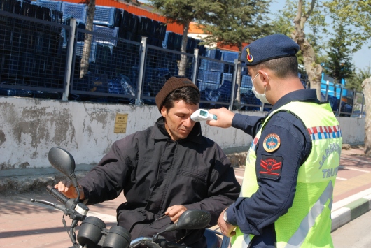 Günlük yaklaşık 600 araç ile yolcu ve sürücünün kontrol edildiği uygulamada, vatandaşların ateş ölçümleri yapılıp ilçeye giriş ve çıkışlar kayıt altına alınıyor.