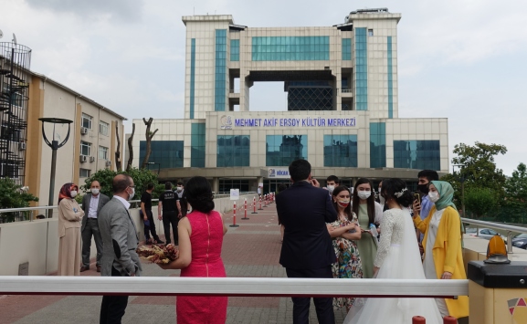 İstanbul'da alınan bilgiye göre, Mehmet Akif Ersoy Kültür Merkezi ve Nikah Salonunun dış cephesinde, nikah töreni sırasında henüz belirlenemeyen nedenle yangın çıktı.