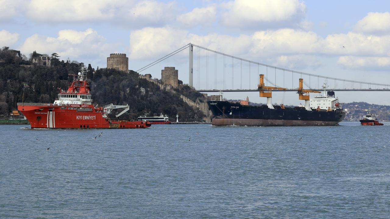 Kıyı Emniyeti Genel Müdürlüğü Nene Hatun Acil Durum Müdahale Gemisi tarafından çeki halatı verilerek kurtarılan Petra Star adlı gemi, İstanbul Gemi Trafik Hizmetleri koordinasyonunda, kılavuz kaptan eşliğinde, Kurtarma-8 römorkörü ve Kıyı Emniyeti-8 botu refakatinde Ahırkapı demir bölgesine intikal ediyor.