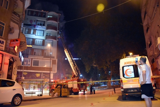 Bilecik'te alınan bilgiye göre, Tevfik Bey Caddesi'nde bulunan 8 katlı bir apartmanın çatı kısmında henüz belirlenemeyen nedenle yangın çıktı.
