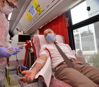 Bilecik Valiliği önünde gerçekleştirilen kan bağışı kampanyası kapsamında Vali Şentürk, valilik personeli, POMEM öğrencileri ile vatandaşlar, sağlık kontrolünün ardından kan bağışında bulundu.