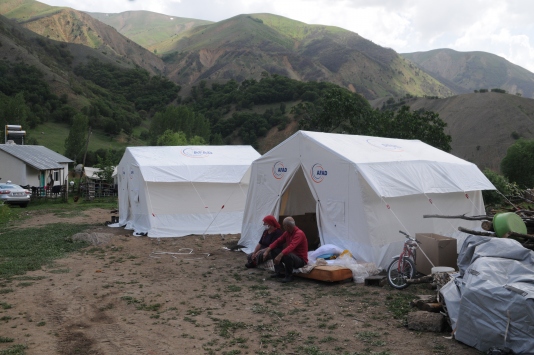 Depremden etkilenen bölgelerde kurulan çadırlarda yaşam sürüyor.
