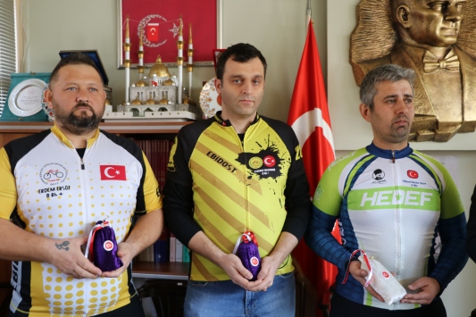Edirne Bisiklet ve Doğa Sporları Topluluğu Temsilcisi Barış Yalçındağ ise 14 Mart sabah 05.00'te Edirne'den 11, Lüleburgaz'dan 20 bisikletlinin, taşıdıkları şehit toprağıyla yola çıkacağını aktardı.