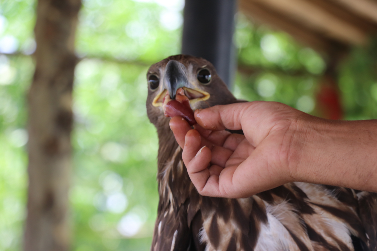 Kartal yavrusunu iş yerine getiren Yılmaz, "Çok açtı, zorla kendisine ufak ufak ciğer verdim. Sobayı yaktım. Yaklaşık 2 gün boyunca sobanın önünde kendisine zor geldi. Yaklaşık 3 haftada kartal tamamen sağlığına kavuştu. Bakımını yaptıktan sonra tamamen iyileşti. Özgür olsun diye doğaya bıraktım ama tekrar döndü" dedi.