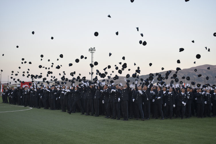 Daha sonra yemin eden 580 polis adayı, kep atarak mezuniyet sevincini aileleriyle paylaştı.