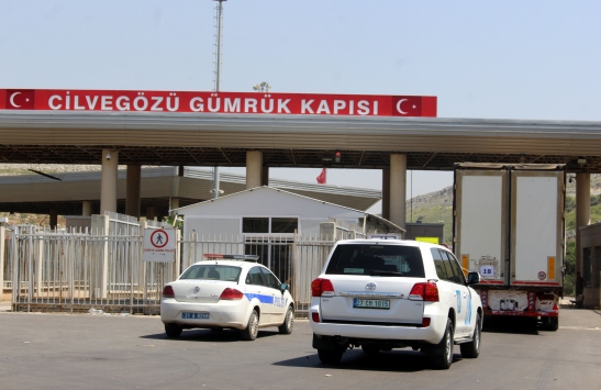 BM'nin yardımlarını taşıyan tırlar, Hatay'ın Reyhanlı ilçesindeki Cilvegözü Sınır Kapısı'ndan geçiş yaptı.
