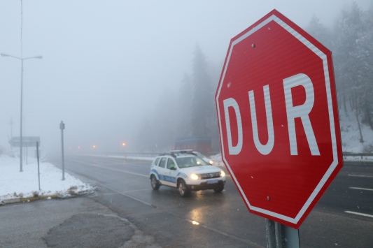 Kar yağışının yanı sıra sis nedeniyle görüş mesafesi yer yer 30 metreye kadar düştü.