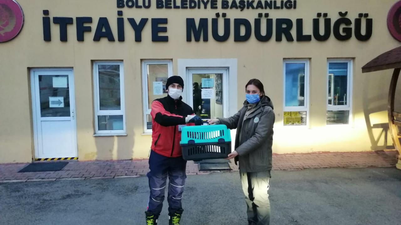 Otobüsü durdurarak yaralı şahini otobüse alan sürücü, hayvanı Bolu Belediyesi İtfaiye Müdürlüğüne teslim etti.