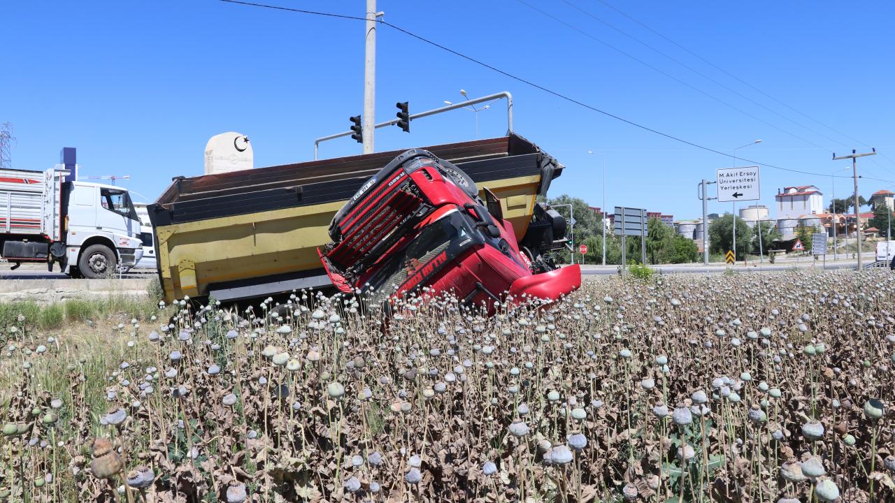Osman Coşkun (36) idaresindeki 15 AAB 343 plakalı tır, yoldan çıkarak tarlaya devrildi.